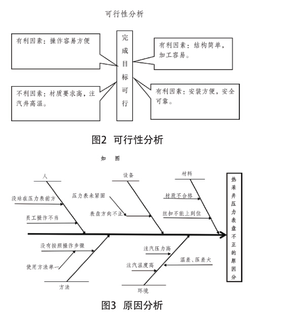 目前,第二采油作業區共有熱采井133口,采油工每天要錄取資料,由于有些井壓力表表盤的方向不一 致,也不規范,造成錄取資料有誤差。我們小組屬現場型QC小組,主要圍繞抽油機井在生產過程中存在的一些問題,開展活動。