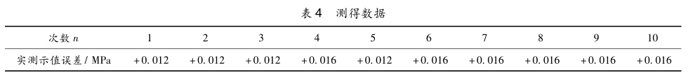 對(duì)一塊0~ 1.6 MPa、1.6級(jí)的壓力表在0.8 MPa點(diǎn)處做10次重復(fù)性測(cè)量,測(cè)得數(shù)據(jù)如表4 所示。