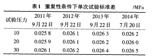 2.1.1采油測試壓力表檢定裝置重復性測量