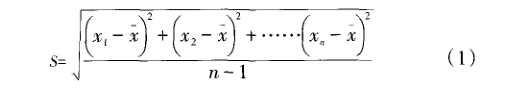 式中:S為標準偏差為測量次數;為各次 的測量值,i=l…n0