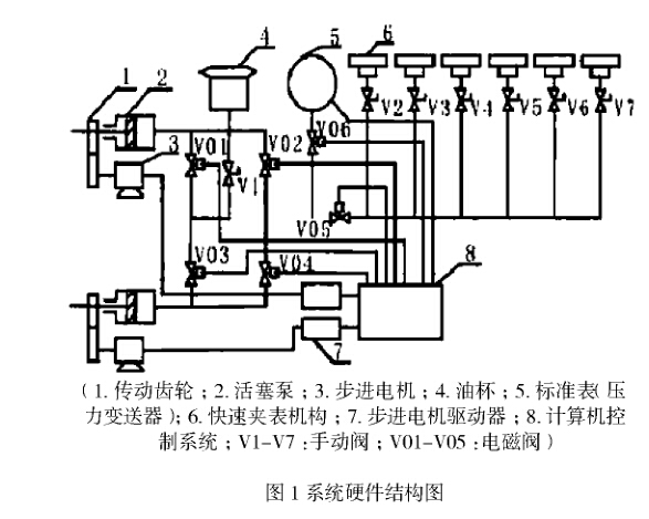 壓力儀表是一種應用非常廣泛的儀 器.在對其進行檢定時.多采取較為傳統 的檢定方法.而這種落后的檢定方法.在 面對龐大的檢定工作量時,很難提高檢定 效率,同時檢定的準確性也大打折扣m: 為此.設計一種自動檢定系統.提高檢定 效率和準確性具有非常重要的意義鑒于 此,本文根據{彈性元件式一般壓力表、壓 力真空表和真空表檢定規程》m的相關標 準,對壓力表自動檢定系統進行設計,: