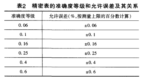 測(cè)量上限為2.5MPa、準(zhǔn)確度等級(jí)為0.4級(jí)的精密 壓力表的允許誤差:根據(jù)JJG49-1999《彈簧管式精密壓力表和真空表檢定規(guī)程》之3.1,可得精密表的準(zhǔn)確 度等級(jí)和允許誤差及其關(guān)系如表2所示。