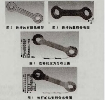 設置連桿的材料為不銹鋼,其彈性模量為1.93X 10u Pa泊松比為0.31。對其采用自動劃分網格的方 法,得到的有限元模型如圖2所示。