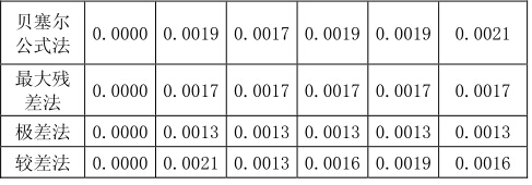 5減少測量次數(shù)為3次時(shí)各種估計(jì)方法的計(jì)算結(jié)果 理論上測量次數(shù)越多,隨機(jī)誤差越小。假設(shè)在和同環(huán)境下測量次數(shù)為3次,數(shù)據(jù)取自上試驗(yàn)中的前二次測量時(shí),各 種不同估計(jì)方法得山的標(biāo)準(zhǔn)偏差結(jié)果s (Pm)如下(單位:
