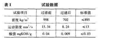 為了驗(yàn)證所設(shè)計(jì)的快接式油污分離接口的過(guò) 濾能力,將日常檢測(cè)所更換下來(lái)的廢油和通過(guò)油污 分離接口進(jìn)行過(guò)濾后得到的回收油的一些主要參 數(shù)進(jìn)行了比對(duì)測(cè)試,試驗(yàn)數(shù)據(jù)如表1所示。