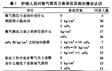 氧氣筒供氧以其成本低、方便搬運、不受使用場所限制 等優勢在一些基層醫院、急救車、特殊救治場合發揮著重要作 用。教科書明確指出:氧氣筒壓力表上指針降至5 kg/ cm2時,既木可再用。不少護理人員對壓力單位的認識存在 誤區,對此進行了調査。現報告如下。