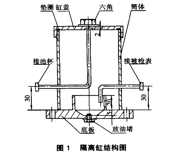清除傳壓介質中的雜質有兩種方法:一是清洗被 檢表;二是切斷雜質的流路。第一種方法做起來很麻 煩,我們采用第二種方法。就是在校驗器的油杯和被 檢表之間的油路上加裝一個隔離缸。利用不同密度的 物體在液體中的浮力不同的原理,把密度大于傳壓介 質的機械雜質隔離在新裝的隔離缸中,切斷了雜質的 流路,起到保護閥和皮碗的作用。