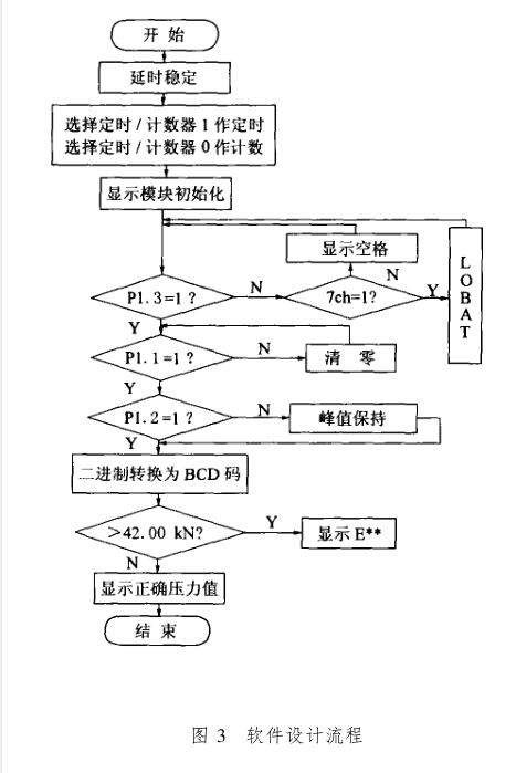 復位,儀表就能正常工作。該顯示器顯示時間間隔 為250 ms^即250 ms采集一次數據,也就是滿250 ms就中斷一次。該表的最大量程為42. 00 kN, 如大于42.00kN就會顯示出錯信息“ E* * ”。如 小于42. 00 kN,則顯示正確的壓力。