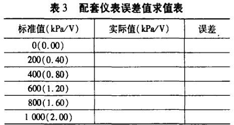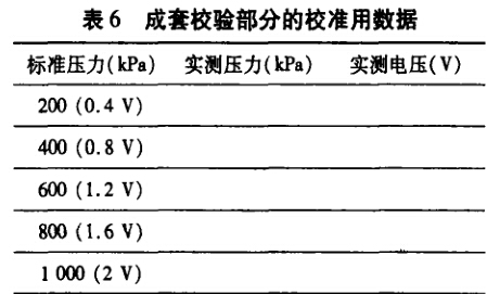 單擊桌面上“壓力表-電壓電流型”圖標,計 算機進人電壓、電流型壓力變送器及配套儀表校驗 主界面。選擇傳感器類型(如電壓型CY.Y2-1(5 V)),單擊“成套校驗”圖標,進人壓力傳感器及配 套儀表成套校驗界面。將0.03%數字萬用表測試 線連接到配套儀表接口的測試位2,將D030 - EG 三用表校驗儀與試驗臺測試線(電壓型)相連。壓 力校驗器上安裝0. 25級(0 ~ 1. 6) MPa精密壓力 表。三用表校驗儀分別輸出標準電壓0.4 V、0. 8 V、1.2 V、1.6 V及2 V,同時相對應壓力校驗器造 壓到 200 kPa、400 kPa、600 kPa、800 kPa 及 1 000 kPa時,比較液晶顯示屏上“傳感器/壓力”部分示 值。查看數字萬用表所顯示的電壓值。如表6。