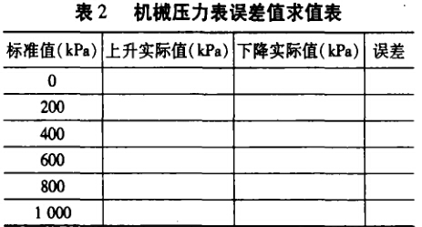 計算機啟動,雙擊桌面上“機械表”圖標,計算 機進人彈簧管式壓力表校驗界面。將0.25級(0~ 1.6) MPa精密壓力表與校驗器連接好,順時針旋轉 壓力校驗器手輪,精密壓力表與試驗臺面板液晶顯 示壓力一起上升,根據表2中標準值,點擊保存每 一校驗點的標準傳感器測得值,比較兩者各點上的 指示值,即可得到誤差值。
