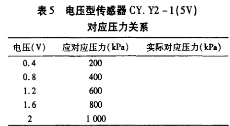 單擊桌面上“壓力表-電壓電流型”圖標,計 算機進人電壓、電流型壓力變送器及配套儀表校驗 主界面。選擇傳感器類型(如電壓型CY.Y2-1(5 V)),單擊“傳感器校驗”圖標,進人電壓型傳感器 校驗界面。將D030-EG三用表校驗儀與試驗臺 測試線(電壓型)相連,三用表校驗儀輸人一個標 準電壓(V),液晶顯示屏“傳感器/壓力”部分顯示 一對應壓力(kPa)。對應關系如表5。