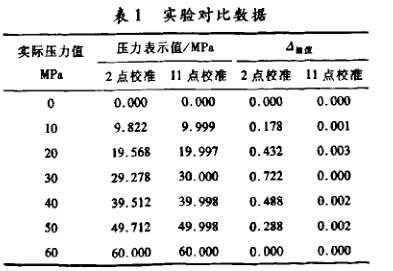 經實驗得到滿量程和零點校準方式與11點 校準方式的對比數據列于表1。
