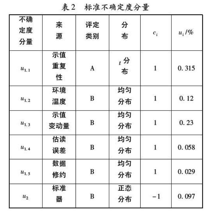 3.5標準不確定度分量一覽表 各標準不確定度分量見表9