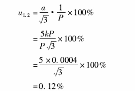 對于指針類的刻度儀表,要求估讀至最小分度值 1/5,由于操作者的習慣視力及指針與刻度盤間有 距離,視線可能產生偏角,因此,估讀誤差同樣以± 1/5分度值估計,該誤差分布同樣服從均勻分布,以 半區間計算,有