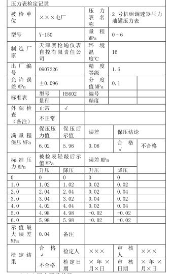 ①記錄壓力表計的出廠編號、型號、生產廠家、精度等 級、分度值、誤差要求、及測量范圍;