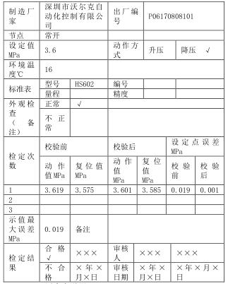 ①記錄壓力開關的出廠編號、型號、生產廠家、誤差要 求、測量范圍及動作方式等;