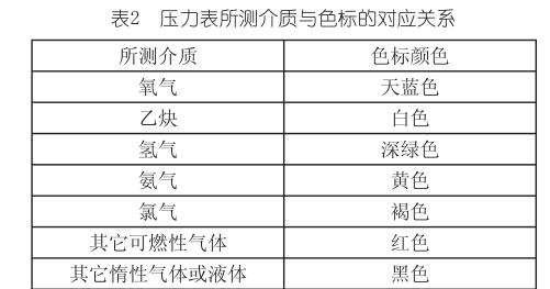 另外,根據(jù)壓力表所測介質(zhì)不同,壓力表應 采用不同的色標,并注明所測介質(zhì)的名稱,詳見 表2。