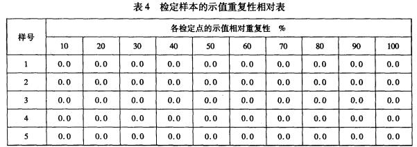 若設(shè)定同一檢定點重復(fù)校準(zhǔn)讀數(shù)的最大值為 內(nèi)由式2得到的各檢定點的示值重復(fù)性相對誤差如 ,最小值為,示值重復(fù)性相對誤差為u2,則有: 表4所示。 u2 =(( P^x—P-iJ /p。)xlOO (式2)