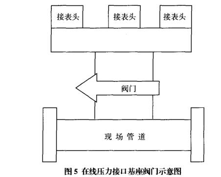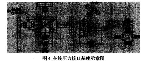 該基座安裝在現(xiàn)場(chǎng)管道上,帶高壓針閥和三個(gè)壓力接頭和 相應(yīng)堵頭(如圖4、5所示),還能加人標(biāo)準(zhǔn)壓力源,對(duì)表頭等進(jìn)行計(jì)量。