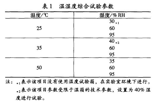 通過(guò)調(diào)研現(xiàn)場(chǎng)校準(zhǔn)實(shí)際環(huán)境(比如典型的艦船上、機(jī)庫(kù)內(nèi)、沙漠區(qū)等),特設(shè)計(jì)以下幾組環(huán)境參數(shù):①在 -10~50t溫度范圍內(nèi)選取6個(gè)溫度點(diǎn)(-10,0,10, 20 , 35 , 50 T)進(jìn)行溫度環(huán)境試驗(yàn);②在30% ~ 95%賺 范圍內(nèi)選取3個(gè)濕度點(diǎn)(30%,60%, 90%)進(jìn)行濕度環(huán)境 試驗(yàn);③溫釀驗(yàn),綜誠(chéng)驗(yàn)參數(shù)的選擇見(jiàn)表1。